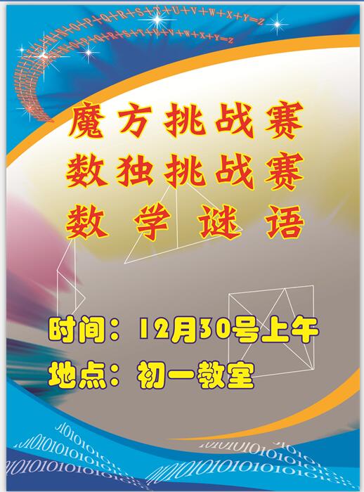 福州铜盘中学数学组科艺节活动的简讯发表时间:2016-12-31 11:21 为激发学生学习和探索科学知识的兴趣,培养学生的创新精神与实践能力,引导学生去发现问题、探究问题以及解决问题,一年一度的科技节又在大家的期盼中拉开了序幕。为期一天的校园科技节活动在学生的热情的参与和收获的喜悦中留下了深深的印象。 此次校园科技节,数学高中部设立了魔方大比拼和数独比赛趣味活动等活动项目。开展校园科技节的目的在于通过各种有趣的活动激发广大学生爱科学、学科学、讲科学、用科学的热情,丰富学生的科学知识,提高学生科学素质,培养学生科学创新精神和实践能力,以促进学生全面发展。 此次校园科技节,数学组初中部开展了“数学谜语”的活动。通过游戏活动,使同学们在学习之余放松头脑,劳逸结合。让同学们从活动中了解、学习一些常识,丰富他们的知识面。活动得到了同学们的广泛喜爱。 总而言之,此次科技节活动虽然短暂,但是我们实现了“人人参与、人人发展、人人收获,给每一个孩子展示自我机会”的活动宗旨,让同学们从小就在幼小心灵中播下了科学的火种,体验到科学的魅力。科技节虽然结束了,但我们对科学的探索之路还很长很长,希望每位同学努力学习科学文化知识,培养创新实践能力,营造“科技成就梦想,创新成就人生”的氛围,长大了才能承接建设祖国,促进祖国科技腾飞的重担!